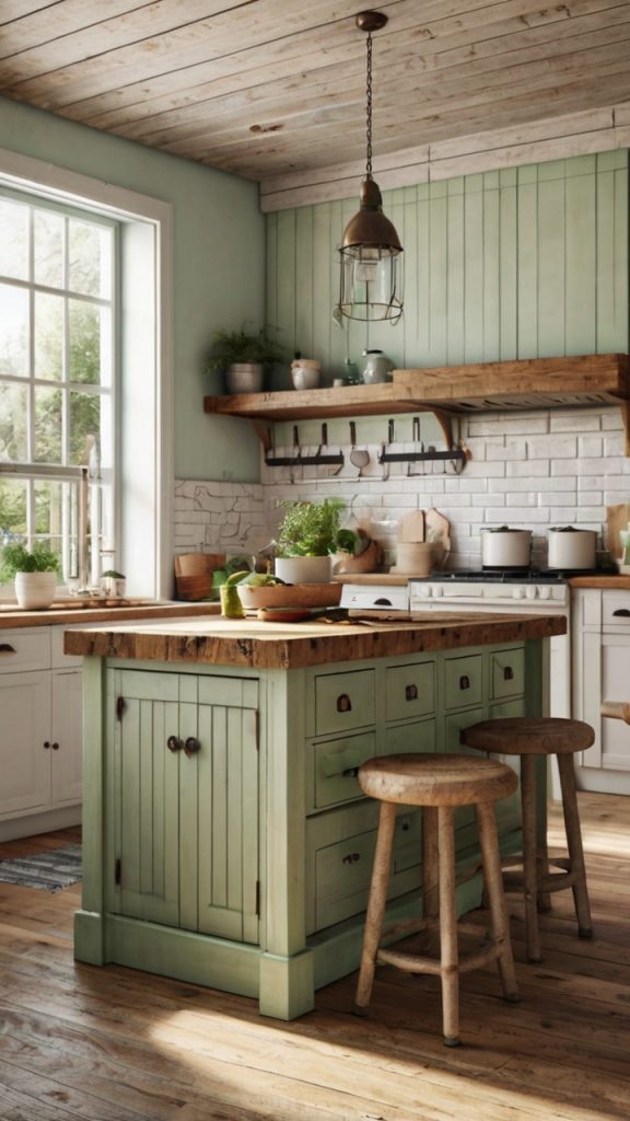 Ever walked into a kitchen and immediately felt like you’re on vacation? That’s what a pastel green cottage-style island does for a space. It’s like bringing that beachy, relaxed cottage vibe right into your home.