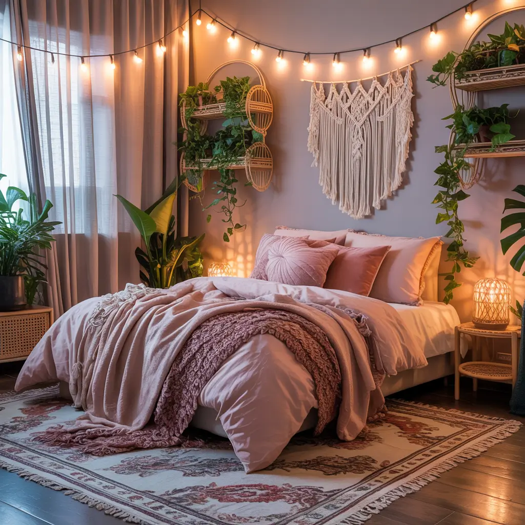 Now, if minimalism makes you yawn, let’s talk boho! This style brings warmth and personality that’ll make you never want to leave your bedroom. Think layered textures, natural materials, and that perfectly imperfect vibe that looks effortless (but actually takes some planning).