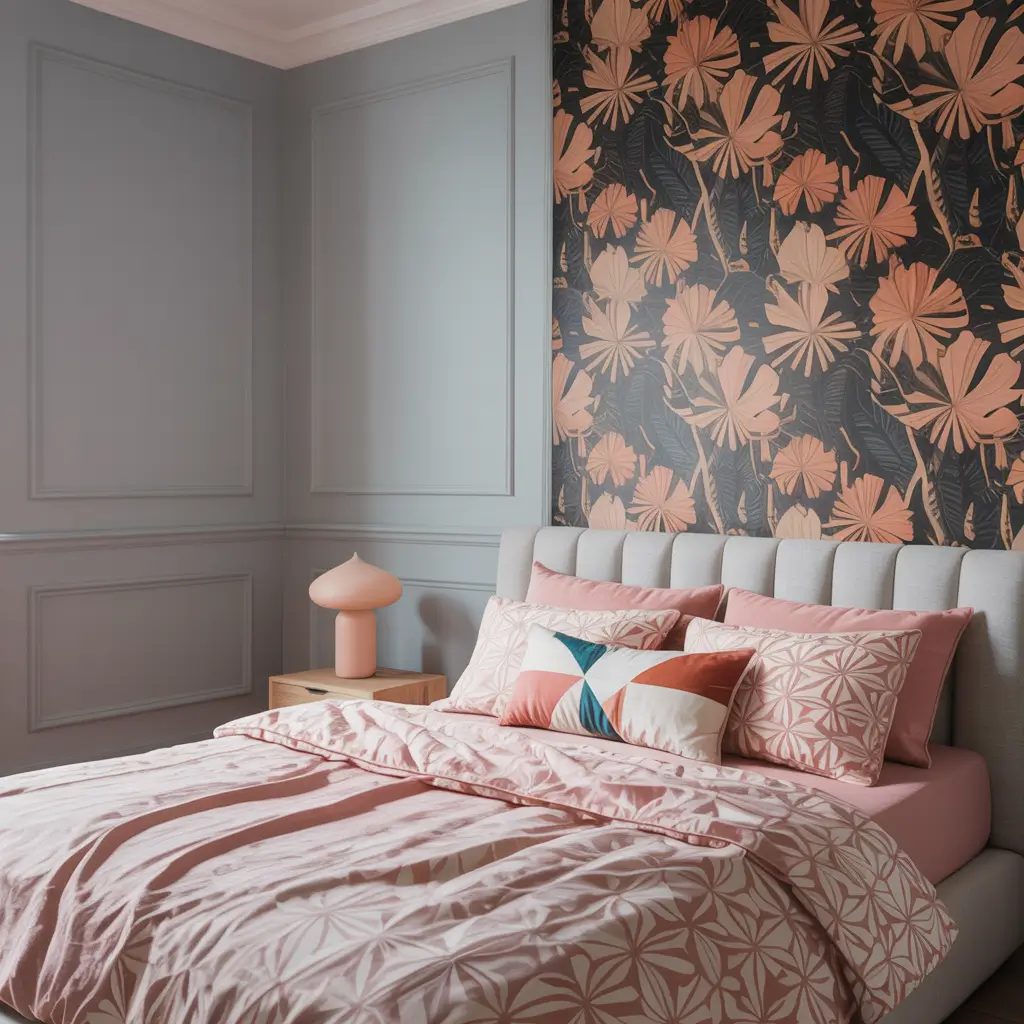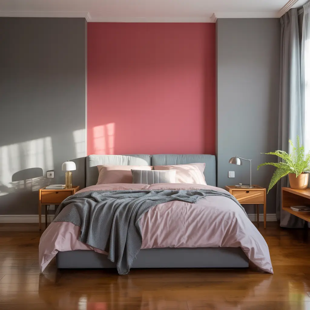 Try a pink accent wall behind the bed with grey on the remaining walls. Or flip it – grey statement wall with pink accents throughout. Wallpaper with both colors ties everything together beautifully. Board and batten, shiplap, or even a gallery wall can create that statement moment.