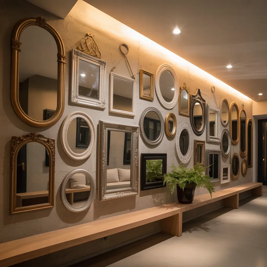 Remember when gallery walls were just for photos? Yeah, those days are gone. Mirror gallery walls bring all that artsy energy but with bonus functionality. I’m talking about mixing different sizes, shapes, and frame styles to create something that actually makes people stop and look.