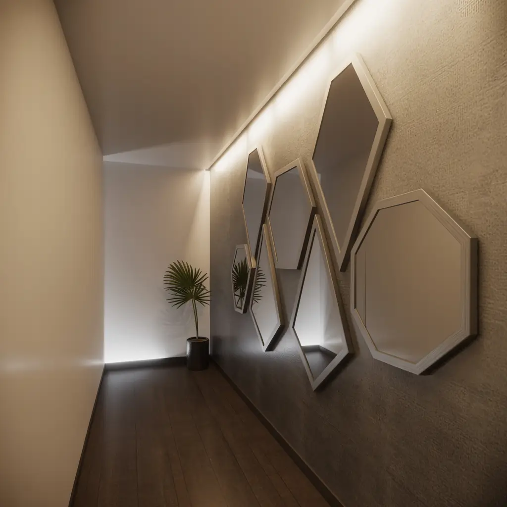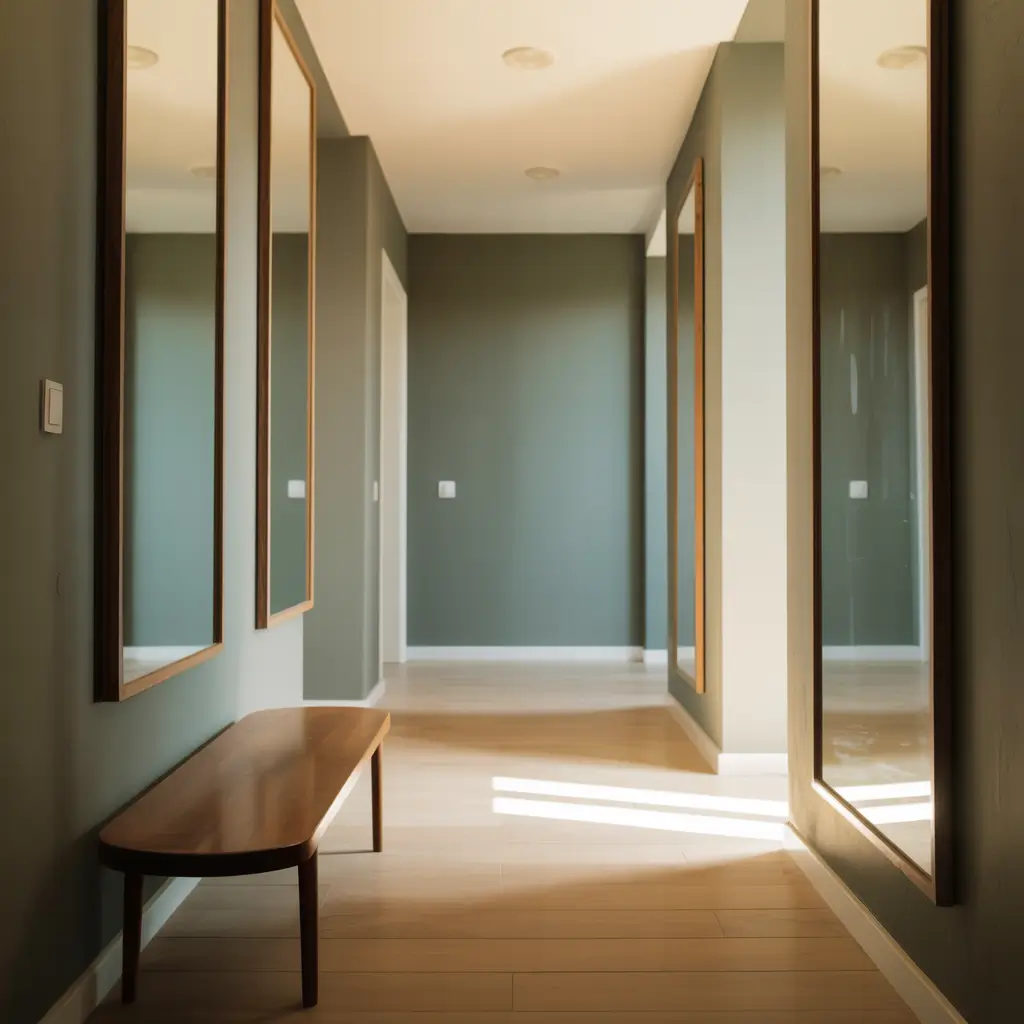Want to go big? Like, really big? Mirrored wall panels transform entire walls into reflective surfaces. It’s dramatic, it’s bold, and it makes your hallway feel like it belongs in a luxury hotel.