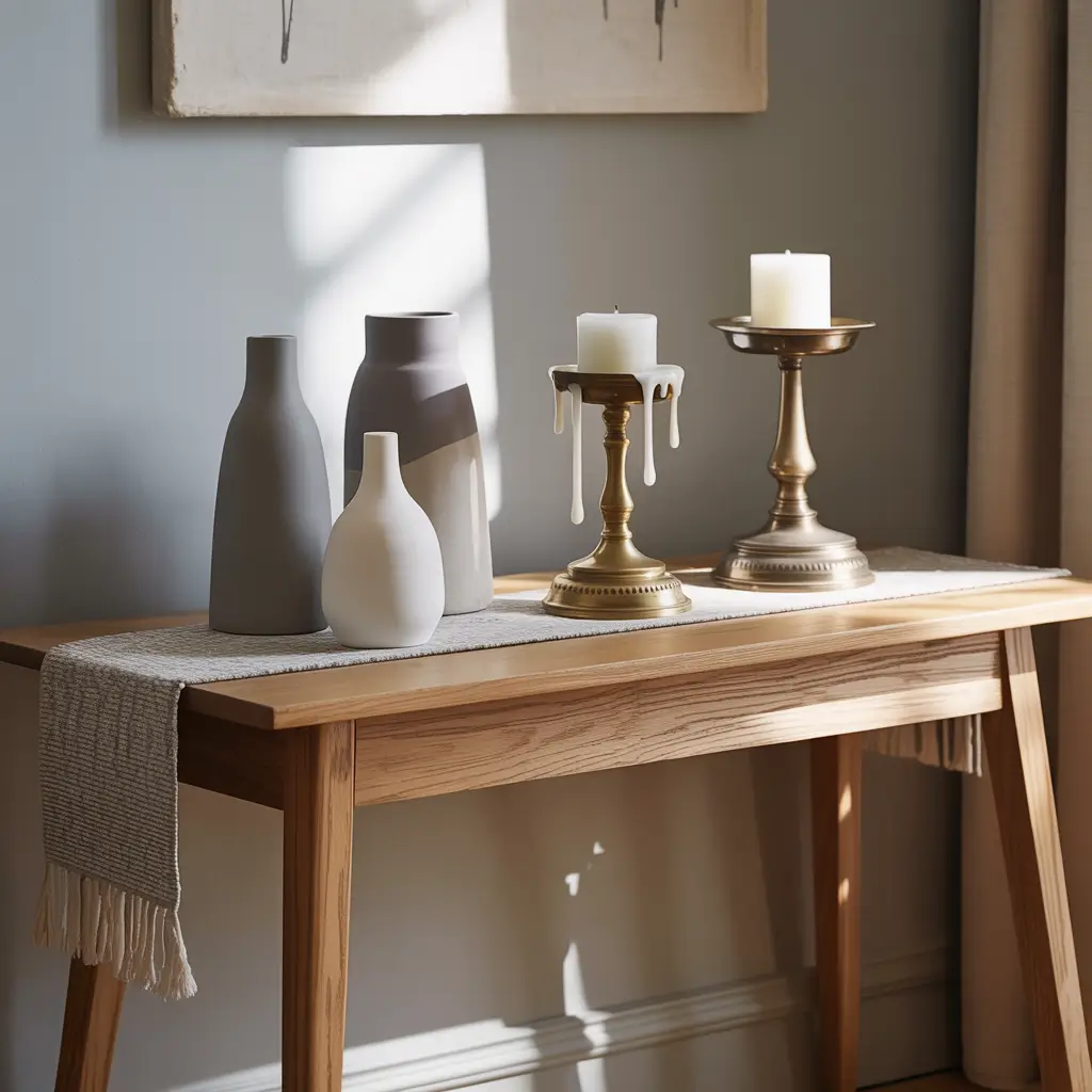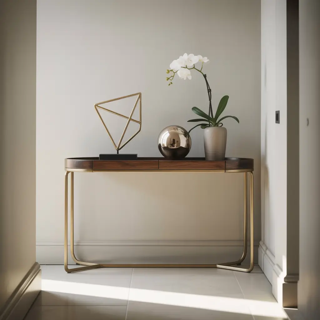 Focus on functionality meeting beauty. Every piece should serve a purpose while looking effortlessly elegant. A simple wooden bowl for keys, a white ceramic vase with a single branch, and maybe a small potted plant. That’s your entire display, and it’s perfect.