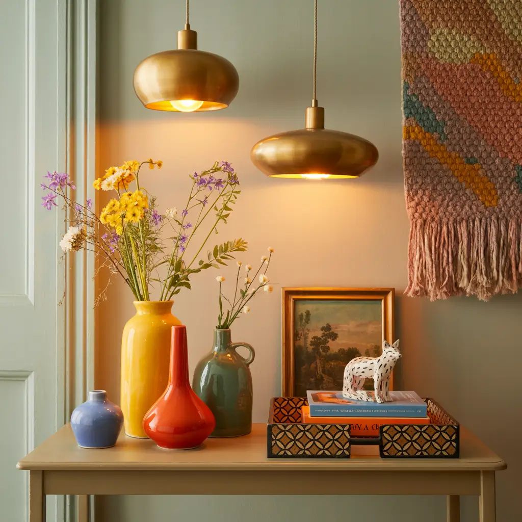 Pick one dominant metal and use the others as accents. My go-to combo involves a brass geometric sculpture as the centerpiece, silver picture frames, and copper accent pieces. The trick is keeping everything else minimal so the metals can shine without creating visual chaos.