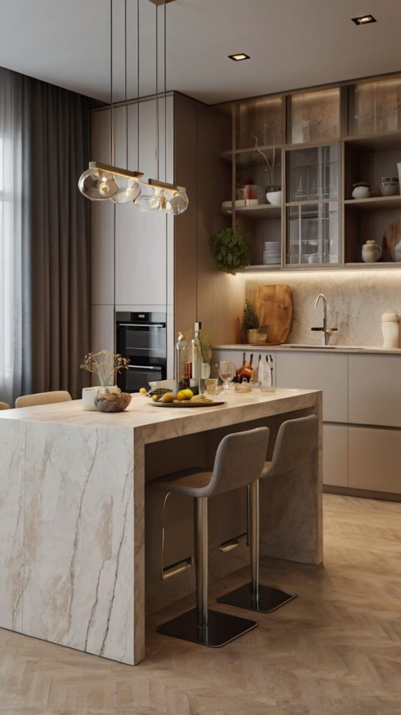 Sometimes you want your kitchen to whisper “expensive” without screaming your bank balance. Marble kitchens deliver that luxury hotel vibe that makes even reheated leftovers feel fancy.