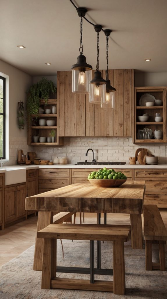 Modern Farmhouse Kitchen with Wooden Dining Table