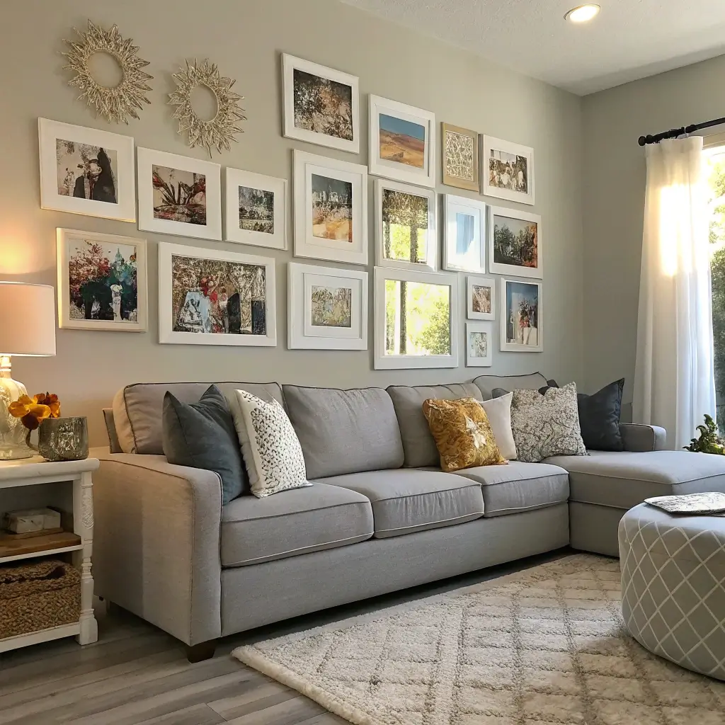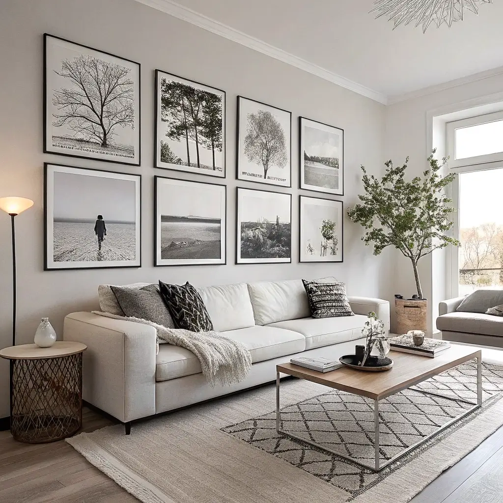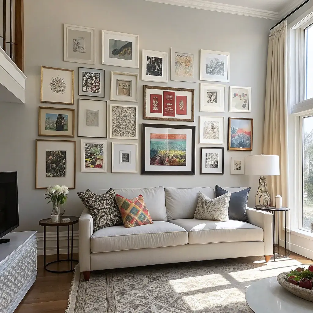 Let’s kick things off with my personal favorite – the gallery wall. This approach totally changed my living room game, and honestly, it’s way easier than you might think. The beauty of a gallery wall lies in its controlled chaos – you mix different frame sizes, colors, and styles to create something uniquely yours.