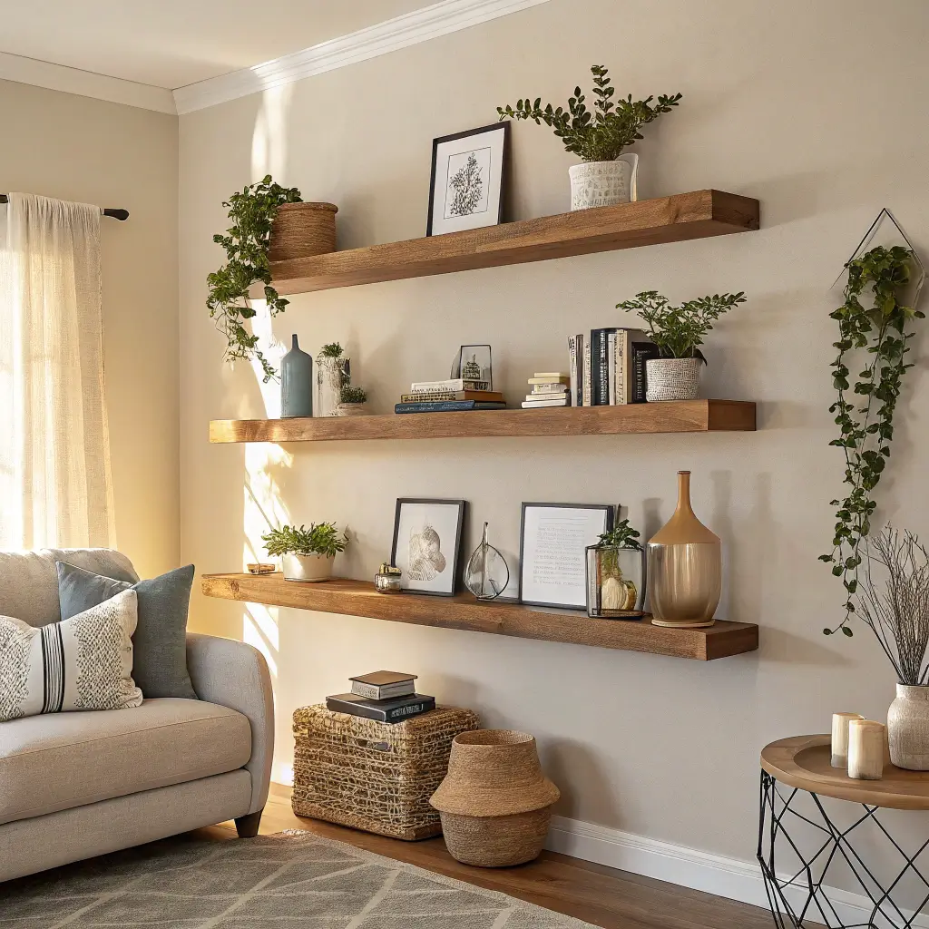 Floating shelves hit different when you style them right. They’re not just storage; they’re three-dimensional art installations that happen to hold your stuff. The trick is treating them like a curated display rather than a dumping ground for random objects.