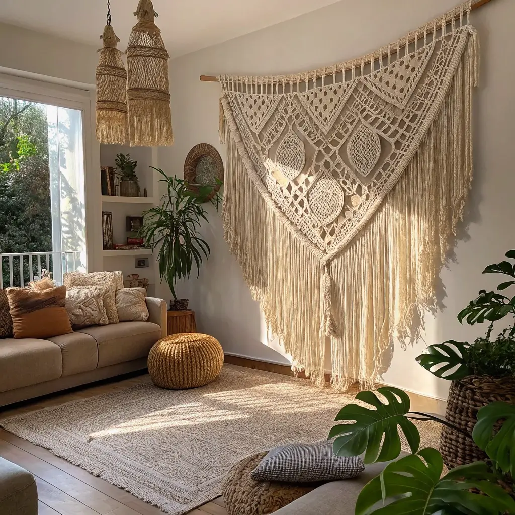 The scale is everything here. For a large wall, you need a piece that’s at least 3-4 feet wide. Any smaller and it’ll look like a postage stamp on your wall. I learned this the hard way – bought a “large” macrame piece online that turned out to be laughably small. Always check dimensions, people!