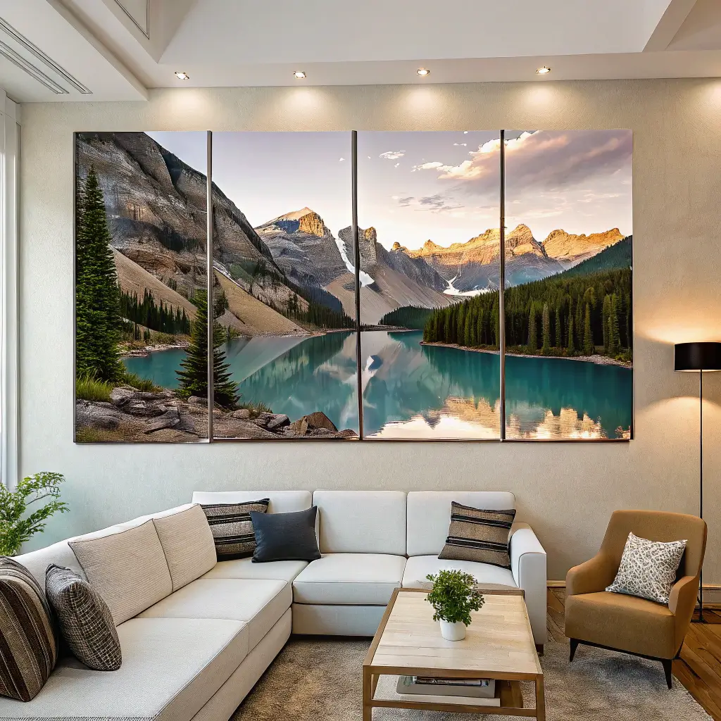 I’m particularly obsessed with landscape photography spread across multiple panels. There’s something about a sunset or mountain range broken into segments that feels both artistic and natural. The panels don’t even need to touch – leaving space between them adds modern flair and makes the overall piece feel larger.
