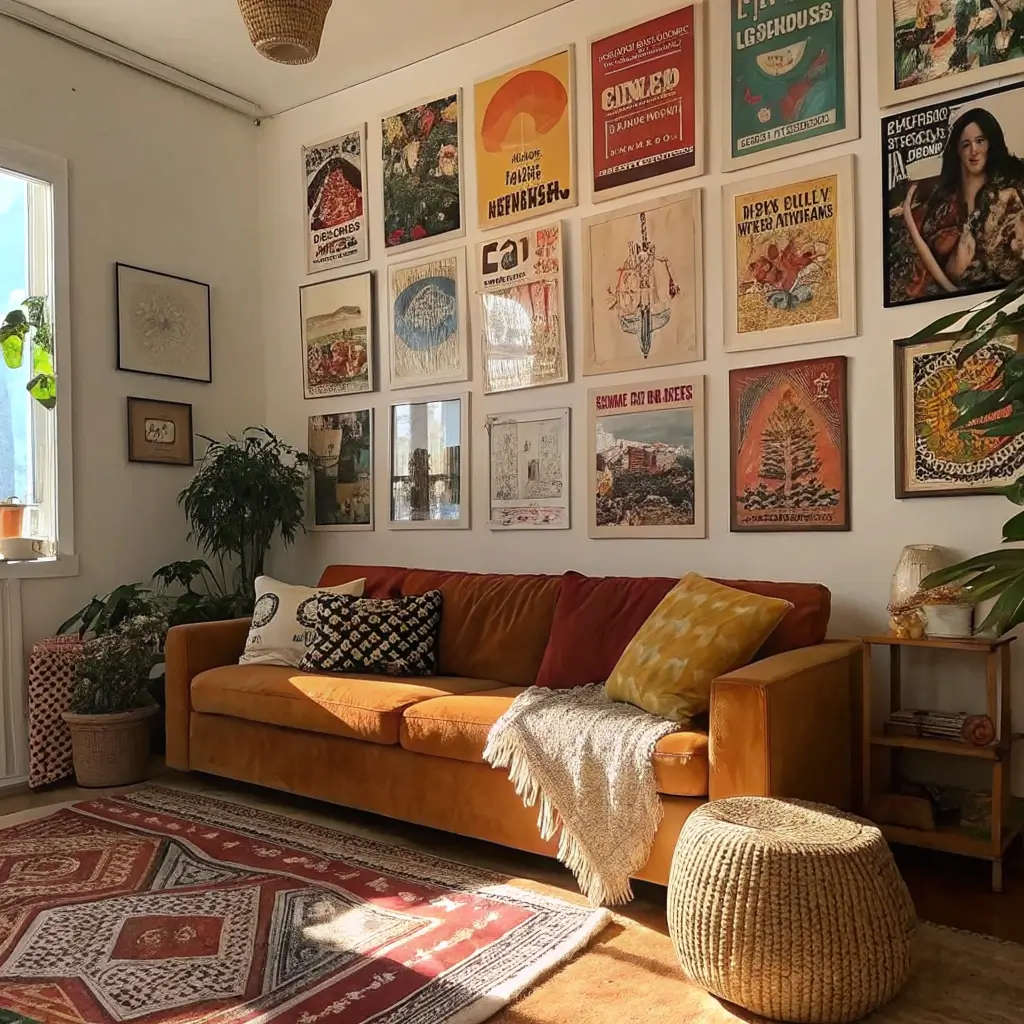 Channel your inner college dorm room, but make it sophisticated. Vintage posters – whether they’re old travel ads, movie posters, or concert bills – create nostalgic charm that tells your story. The trick is choosing a cohesive theme or color palette to avoid visual chaos.