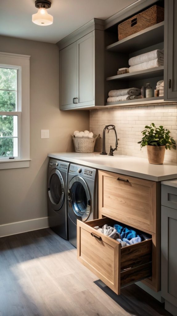 Some people go for fold-down options to save space, but honestly? If you have room for a permanent counter, go for it. You’ll use it for way more than just folding—it becomes a staging area, a storage surface, and sometimes even a plant display area (because why not make laundry rooms pretty?).