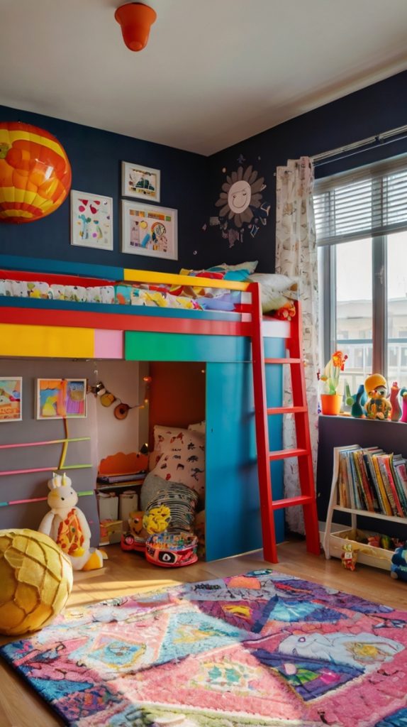 My nephew’s loft bed setup includes a climbing wall on one side (yeah, really), and underneath there’s this amazing play tent situation with battery-powered stars on the ceiling. The kid practically lives under there, and honestly, I’m a bit jealous of his setup.