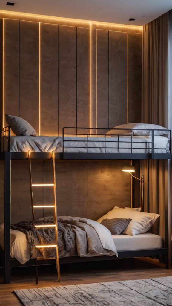 Lighting changes everything, and with loft beds, you’ve got vertical space to play with. String lights, LED strips, pendant lights – the options for creating ambiance are endless. This is where you can really let your personality shine.