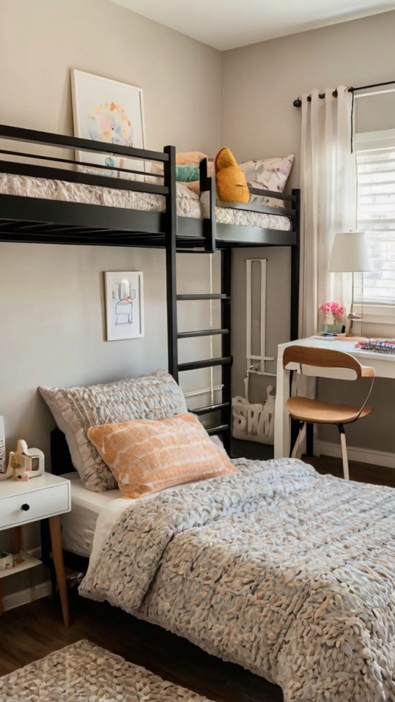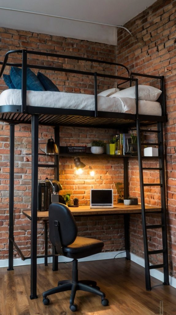 I actually built something similar in my studio apartment last year, and let me tell you, it transformed my productivity. You wake up, climb down, and boom – you’re already at your desk. No commute required! The key here is choosing a frame in white or light wood to keep that airy, minimalist vibe going strong.