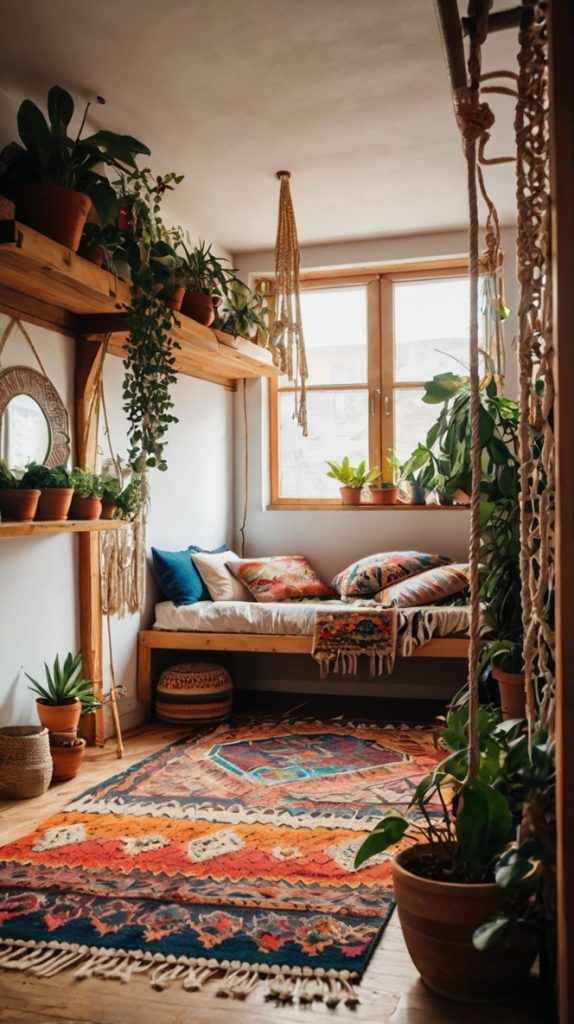 My sister created the most incredible boho loft setup, and I’m still jealous. She wrapped fairy lights around the frame, hung tapestries from the ceiling, and somehow managed to keep 15 plants alive in that tiny space. The secret? Choosing plants that thrive in similar conditions and setting phone reminders for watering day.