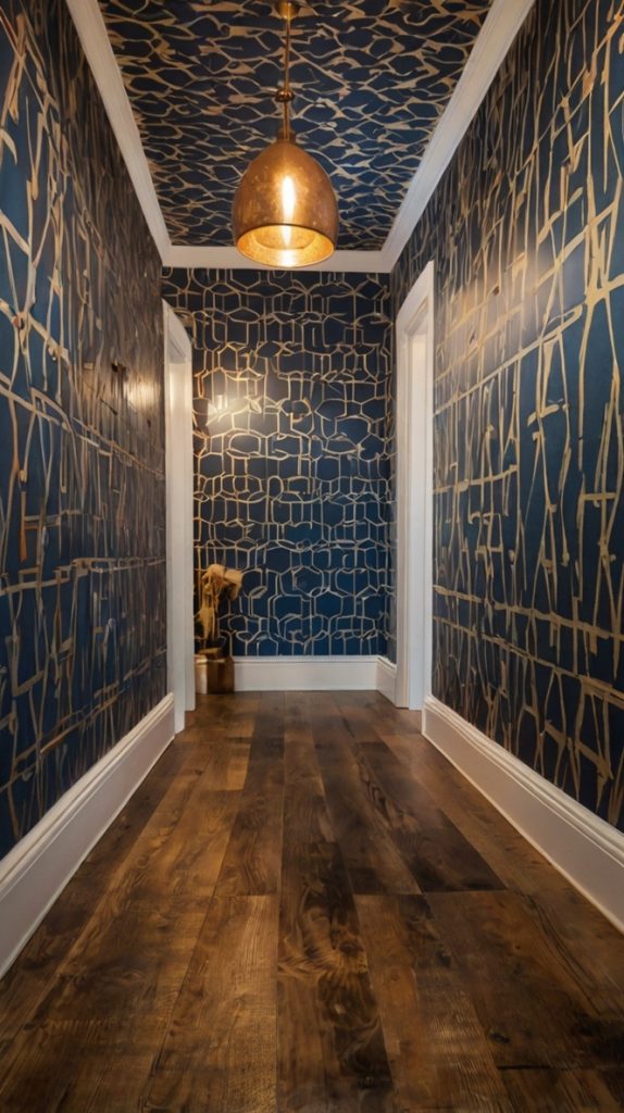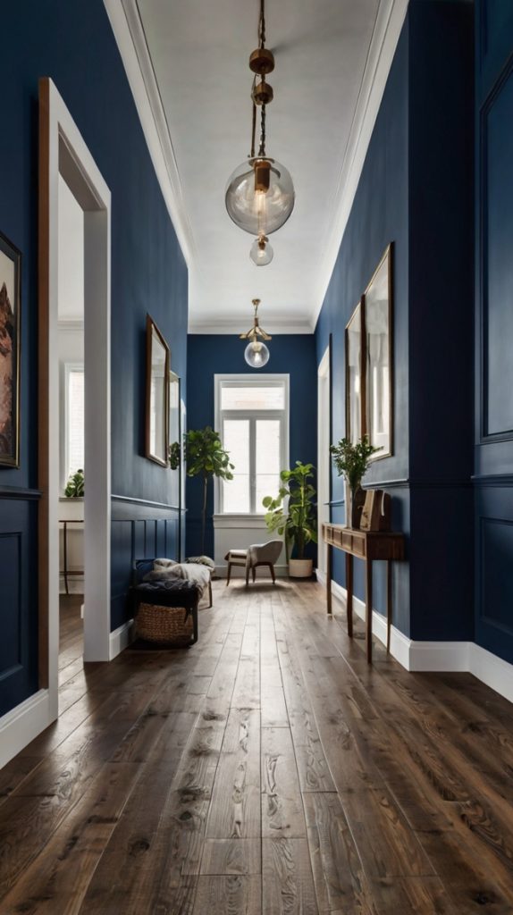 One wall. One bold color. Massive impact. I painted the left wall of my hallway a deep navy blue (Benjamin Moore’s Hale Navy, if you’re curious), and it completely changed the game. The hallway went from “meh” to “wow” with just a gallon of paint and a weekend of work.