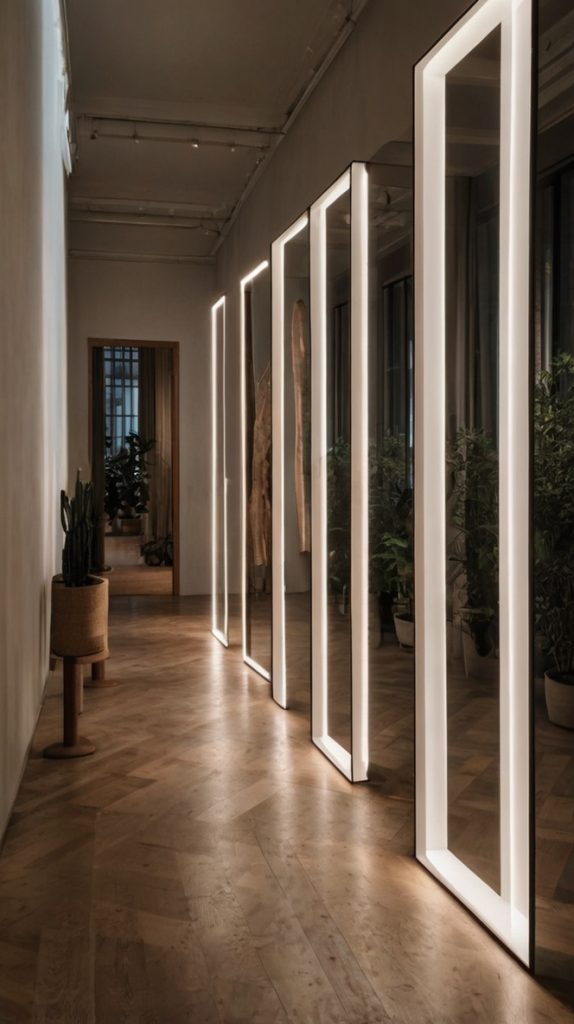 Want to know the oldest trick in the interior design book? Mirrors. But here’s where most people mess up – they go horizontal when they should go vertical. A tall, narrow mirror creates the illusion of height and reflects light down the entire length of your hallway.