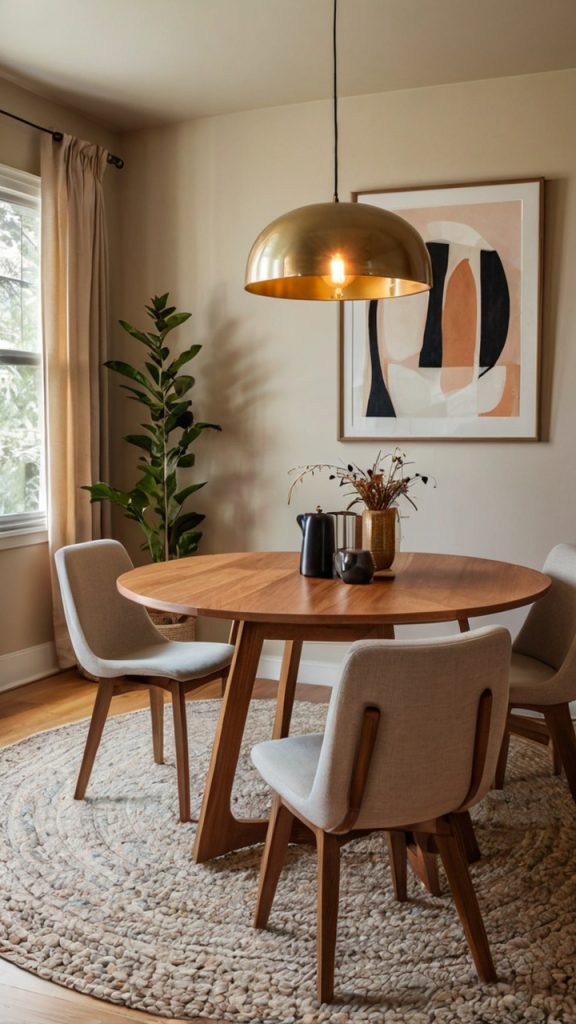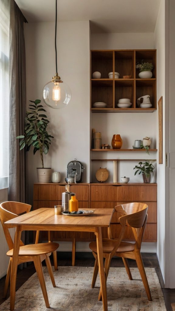 Small space? Welcome to the club. My first apartment had a “dining room” that was basically a corner next to the kitchen. But here’s what I learned: minimalism and mid century modern are best friends.