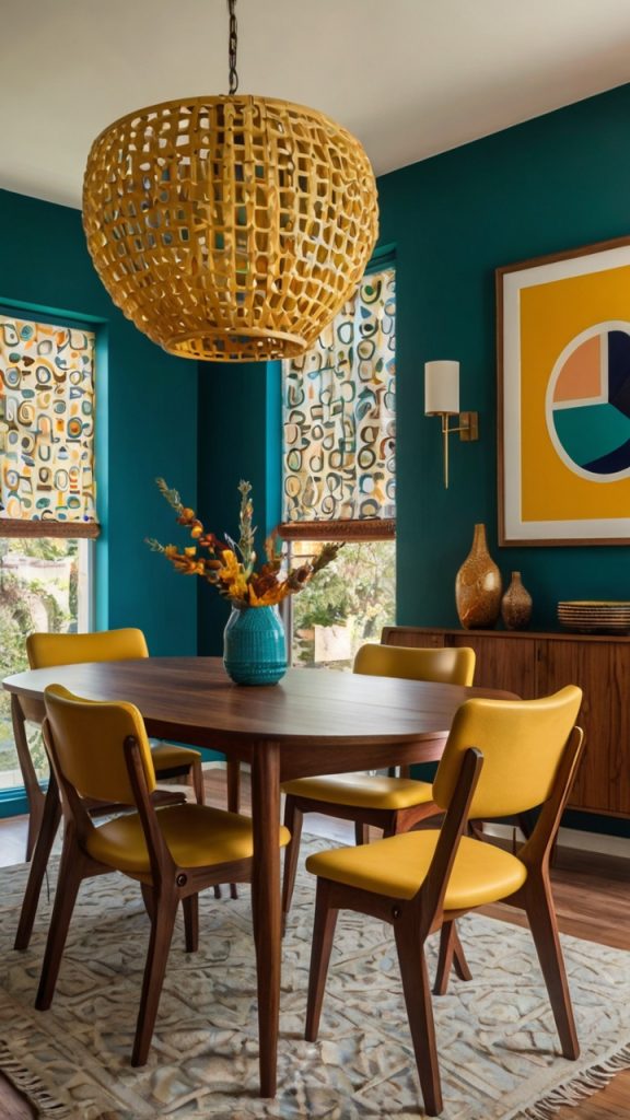 I went wild with orange dining chairs against navy walls, and you know what? It works. The key is choosing colors that lived together in the 1960s. They had a different relationship with color back then – bolder, less afraid of clashing, more willing to experiment.