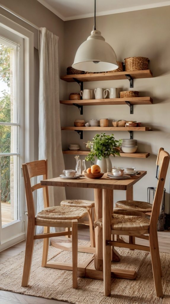 FYI, vertical storage changes everything in small spaces. I mounted wooden crates on my wall for dishes and decor – instant farmhouse charm plus function.