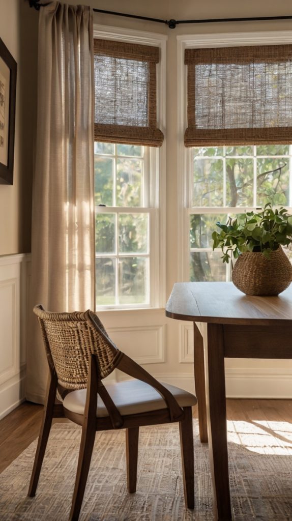 I’ve experimented with every shade of beige, cream, and gray you can imagine. What works best? Layering different tones of the same color family. Start with warm white walls, add a natural wood table, layer in linen-colored chairs, and finish with cream curtains. The result feels sophisticated yet totally approachable.