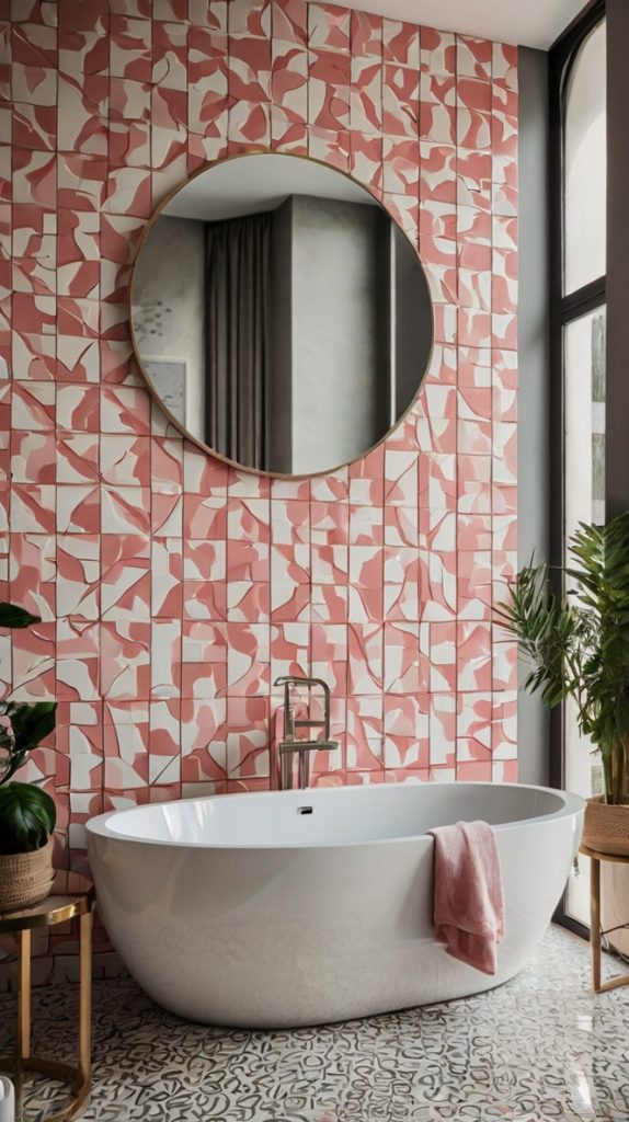 Pink and White Geometric Tile Bathroom