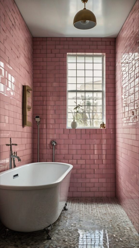 Pink subway tiles are having their moment, and I’m not mad about it. They give you that classic subway tile look everyone loves but with a fun twist that sets your bathroom apart from every other white-tiled space on Instagram.