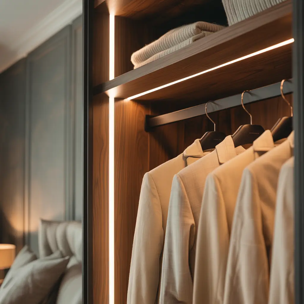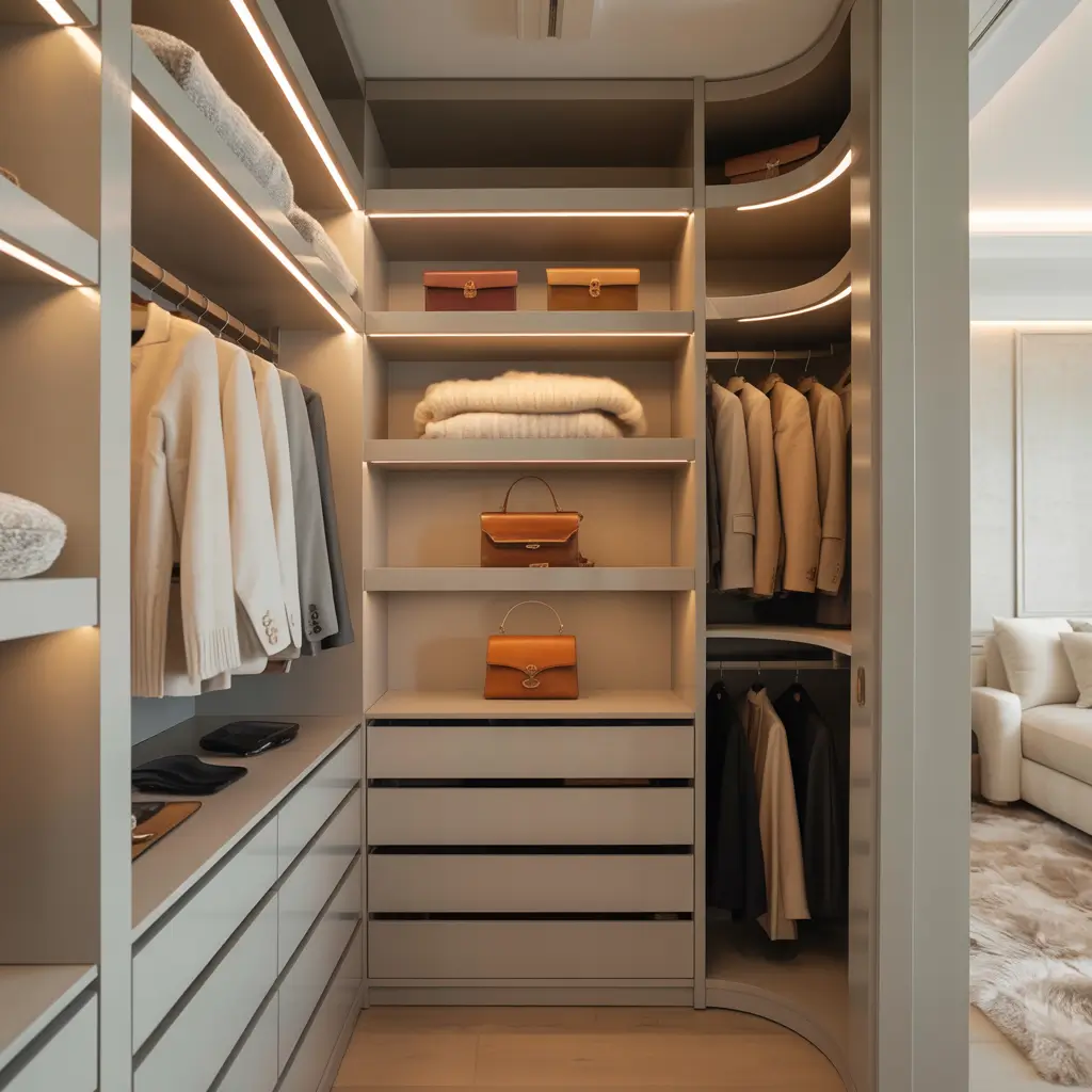 LED lighting strips, leather-lined drawers, and soft-close everything have become surprisingly affordable. My best investment? A motion-sensor light that turns on when I open the doors. No more fumbling in the dark for that black shirt among all the other black shirts!