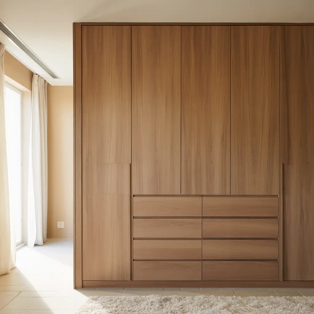 Think light oak with visible grain, walnut with clean lines, or even reclaimed wood for that sustainable edge. My neighbor just installed a stunning ash wood wardrobe with no visible handles – just these clever push-to-open mechanisms that make it look like a piece of art.