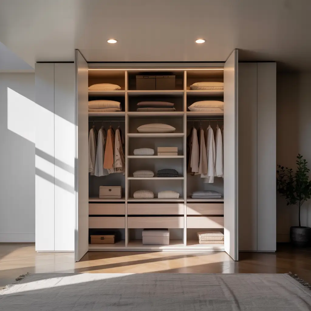 These features aren’t just cool party tricks. They solve real problems. That awkward gap between the wardrobe and wall? Now it’s a pull-out shoe rack. The dead space above the hanging rail? Secret shelf for handbags.