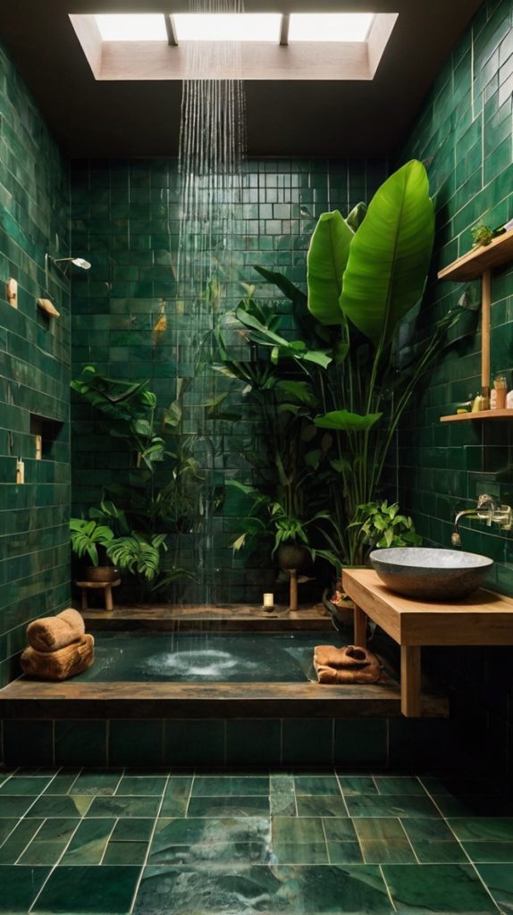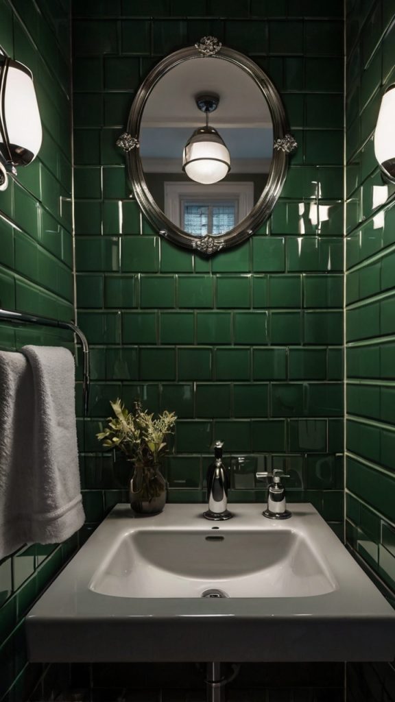 Let me paint you a picture: deep emerald walls that practically swallow light, creating the most intimate atmosphere you’ve ever experienced in a bathroom. I installed dark emerald tiles in my master bath last year, and honestly? Game changer.