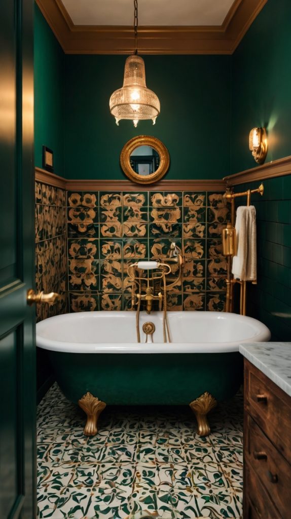 I’ve seen people use hunter green beadboard or shiplap to add texture while maintaining that vintage feel. Throw in some subway tiles and hexagonal floor tiles, and you’ve got a bathroom that feels both nostalgic and fresh.