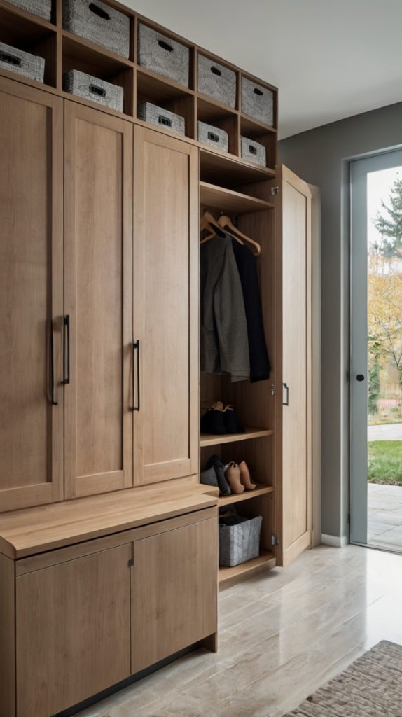 The game-changer with modern cabinet systems? Customization. Every family member gets their own designated zone. No more “whose jacket is this?” arguments. Each person has their cubby, their hooks, their basket – it’s beautiful organized chaos.