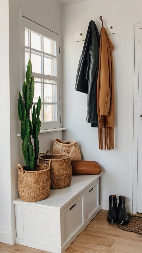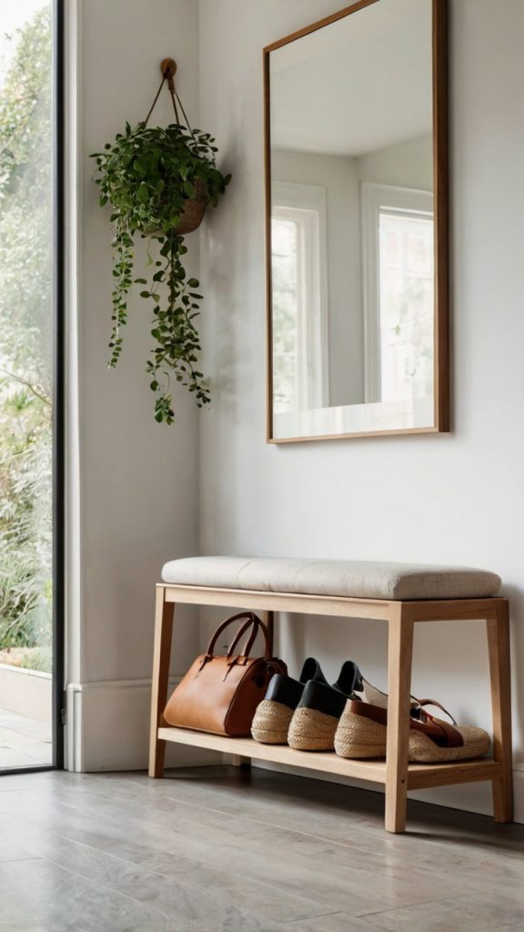 Here’s where things get interesting. Ever sat on a bench that’s also secretly eating all your clutter? A narrow bench with hidden storage becomes your entryway’s Swiss Army knife. Mine measures just 14 inches deep but holds an embarrassing amount of stuff inside.