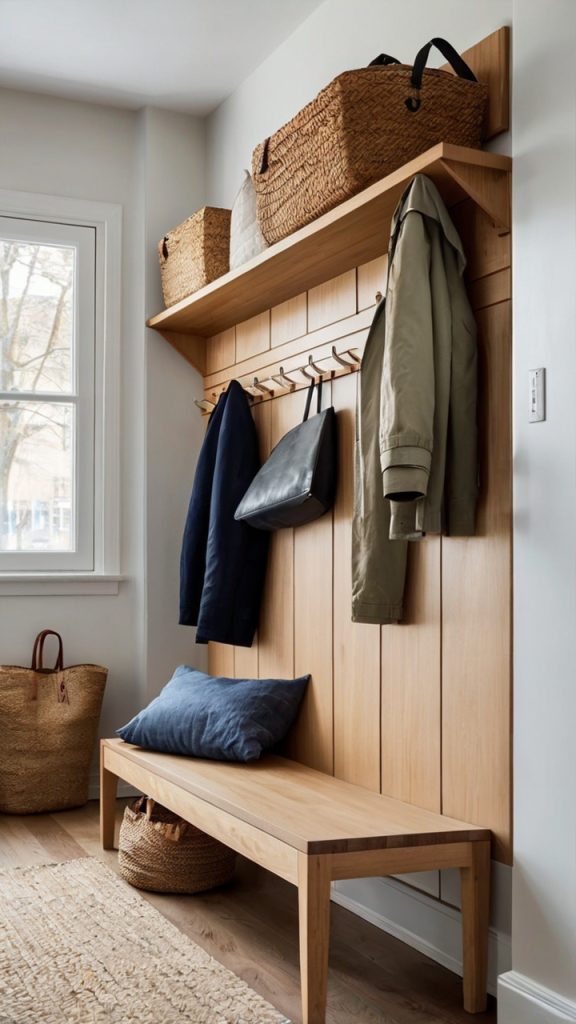 Traditional coat racks? They’re space hogs that wobble every time someone breathes near them. Slim vertical coat hangers mount directly to your wall, taking up maybe 6 inches of depth while providing storage for the whole family’s outerwear collection.