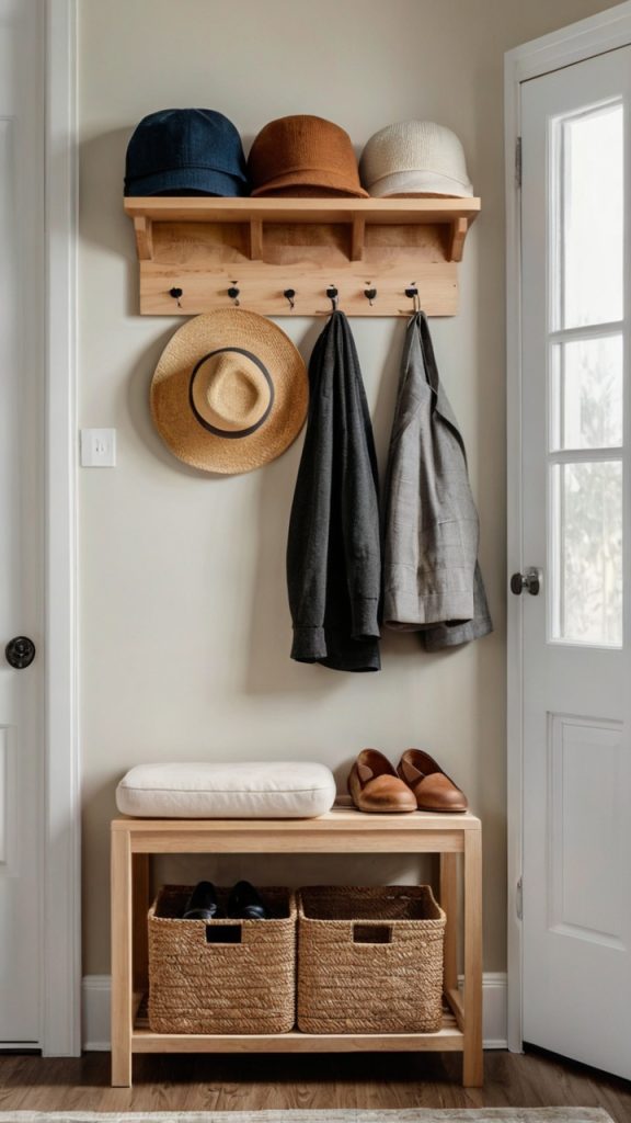 Start with one or two ideas that address your biggest pain points. Shoes everywhere? Try the floating racks or sliding cabinet. Coats creating chaos? Vertical hangers or foldable hooks might be your answer. Build from there as you figure out what works.