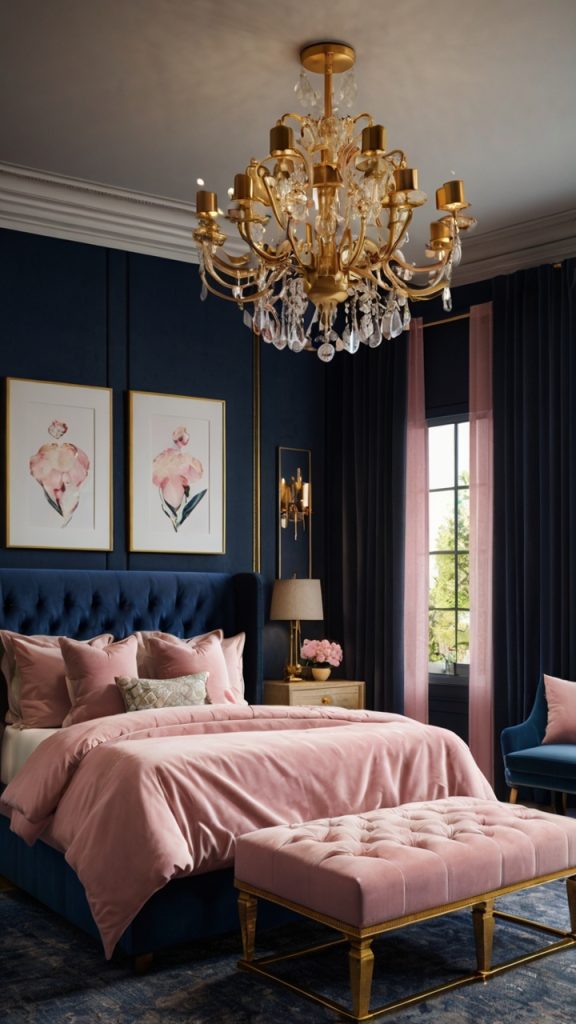 Luxe Navy Blue and Pink Bedroom Makeovers