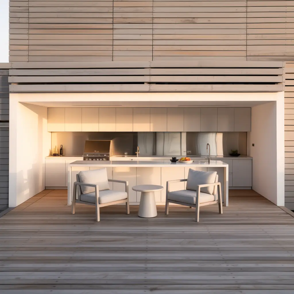 Clean lines, sleek surfaces, and zero clutter – minimalist outdoor kitchens make my design-loving heart sing. These spaces prove you don’t need fancy decorations when your materials and layout do all the talking.