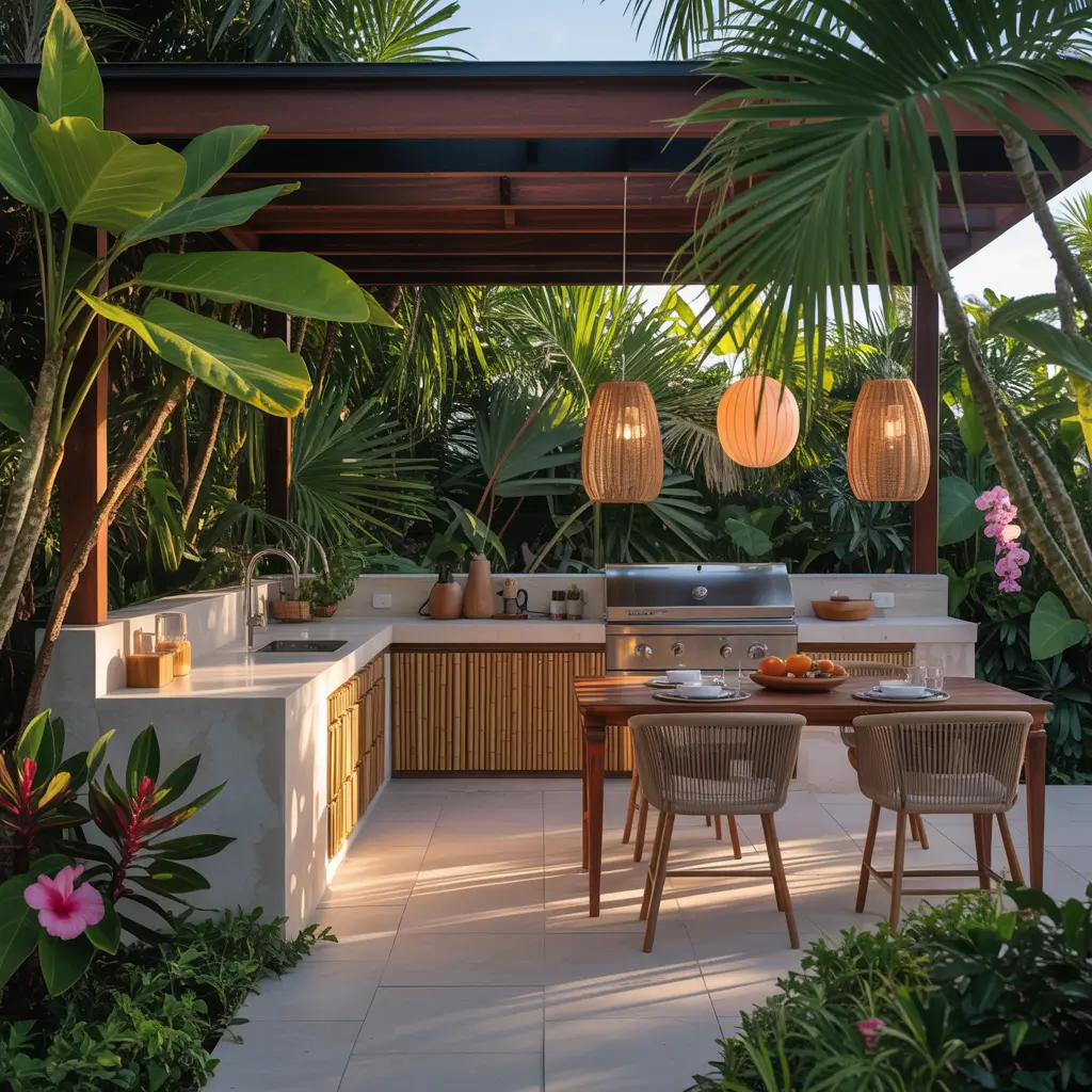 Transform your backyard into a tropical paradise where every meal feels like island dining. These lush, vibrant spaces blend cooking and nature seamlessly. Even in non-tropical climates, you can create this vibe with the right design choices.