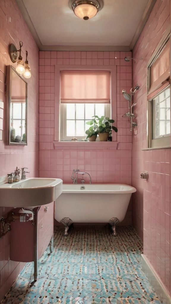 - Textured pink tiles (think Moroccan or terracotta-inspired)