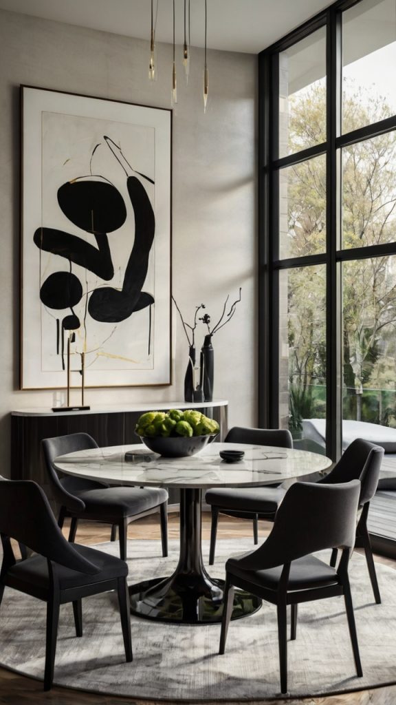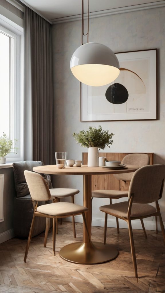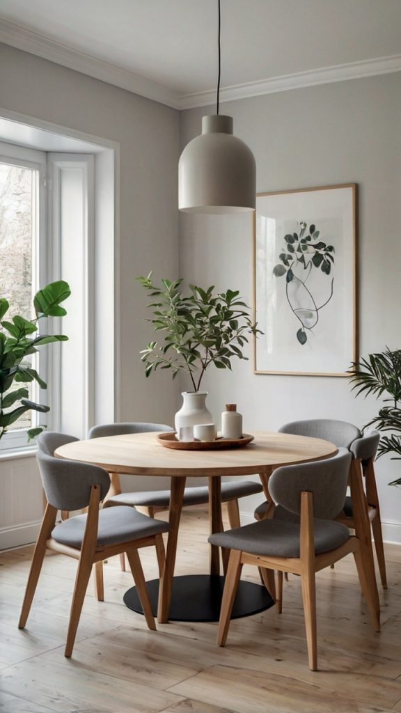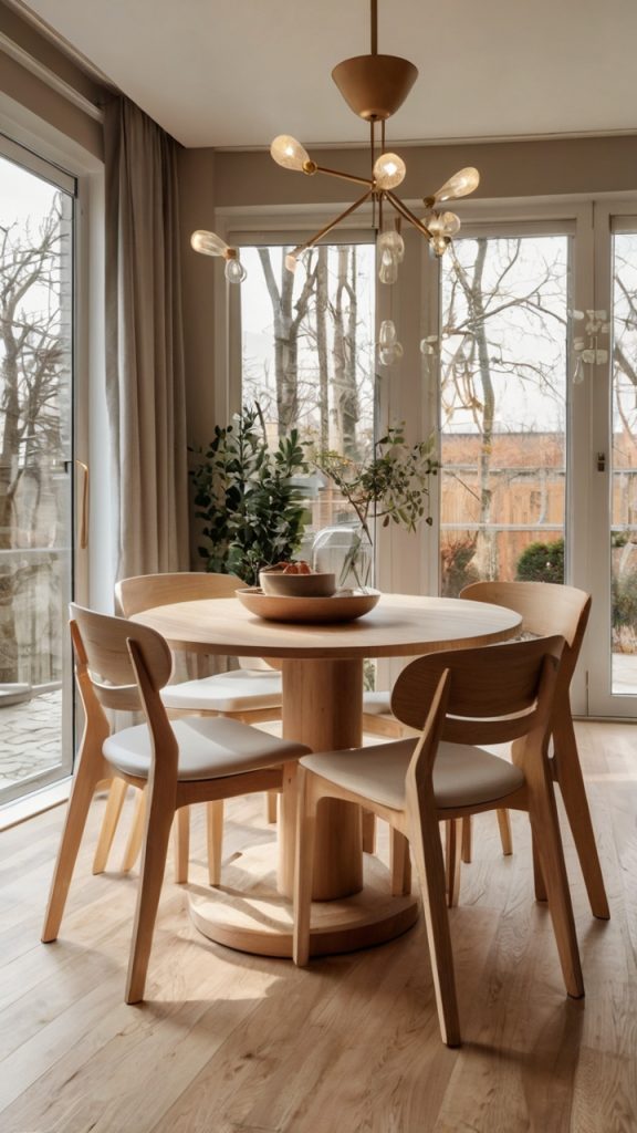 I’ve found that pairing a simple wooden round table with maybe three or four sleek chairs creates this incredible sense of openness. The key is choosing pieces with clean lines and neutral colors. Think warm oak or walnut paired with white or beige upholstery. No clutter, no fuss, just pure dining zen.