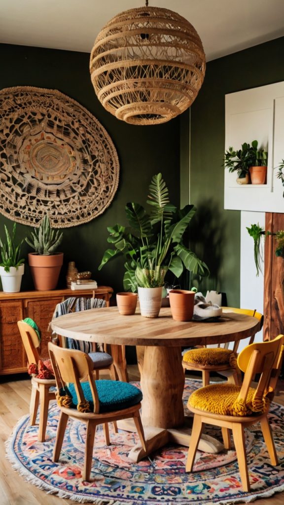 Don’t forget the plants. Seriously, you can’t do boho without greenery everywhere. Hanging planters, a succulent centerpiece, maybe even a small potted tree nearby. It’s like bringing the jungle to dinner, and I’m here for it.