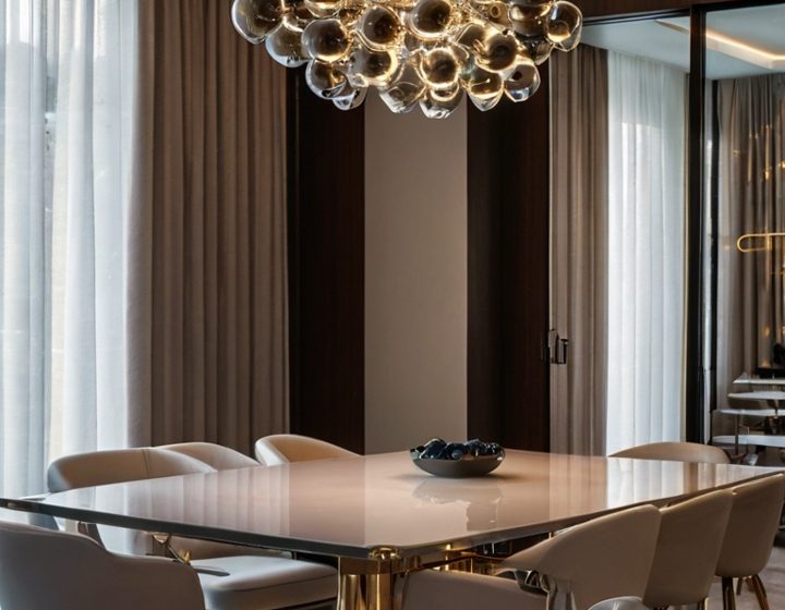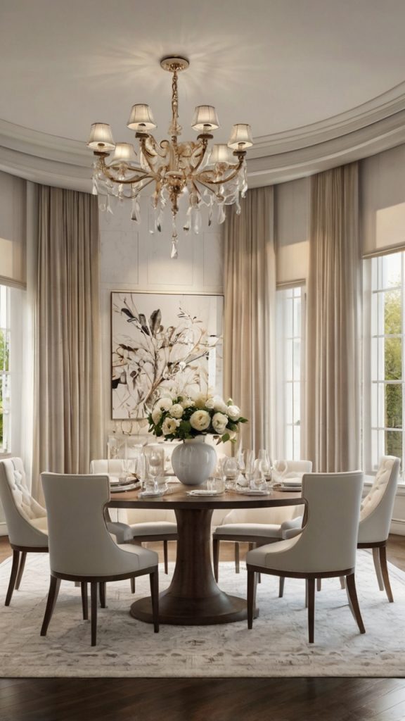 We’re talking about chandeliers that make people stop mid-bite. Think sculptural pieces, cascading crystals, or geometric metal fixtures that look like art installations. The round table below should be sleek and simple—let that lighting do the heavy lifting.