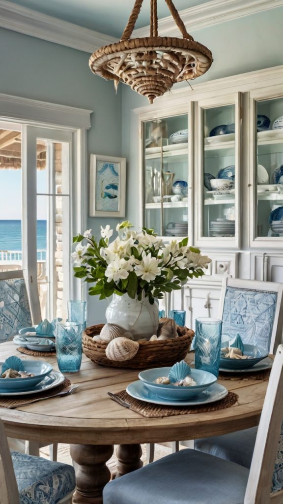What really nails this look? Natural textures. A jute rug underneath, maybe some driftwood centerpieces, and definitely some glass elements to catch the light. You want people to almost smell the ocean breeze (minus the actual fish smell, obviously).