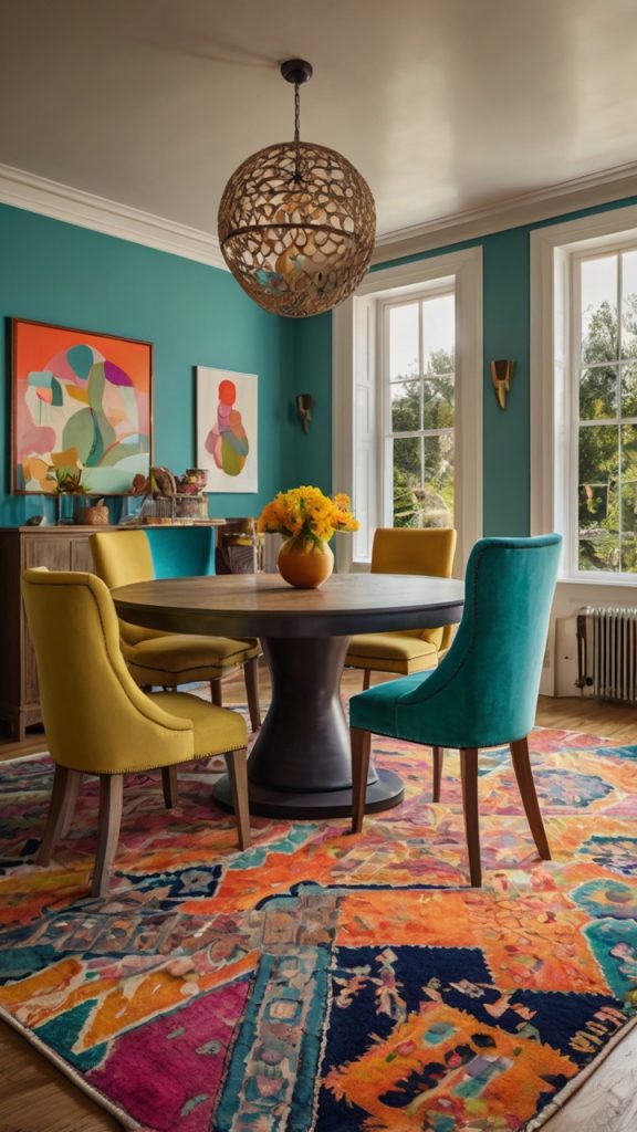 Who says dining rooms need to be serious? If you’re a maximalist at heart, embrace it with a colorful eclectic setup.