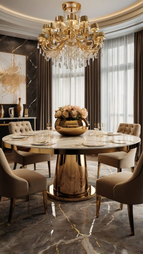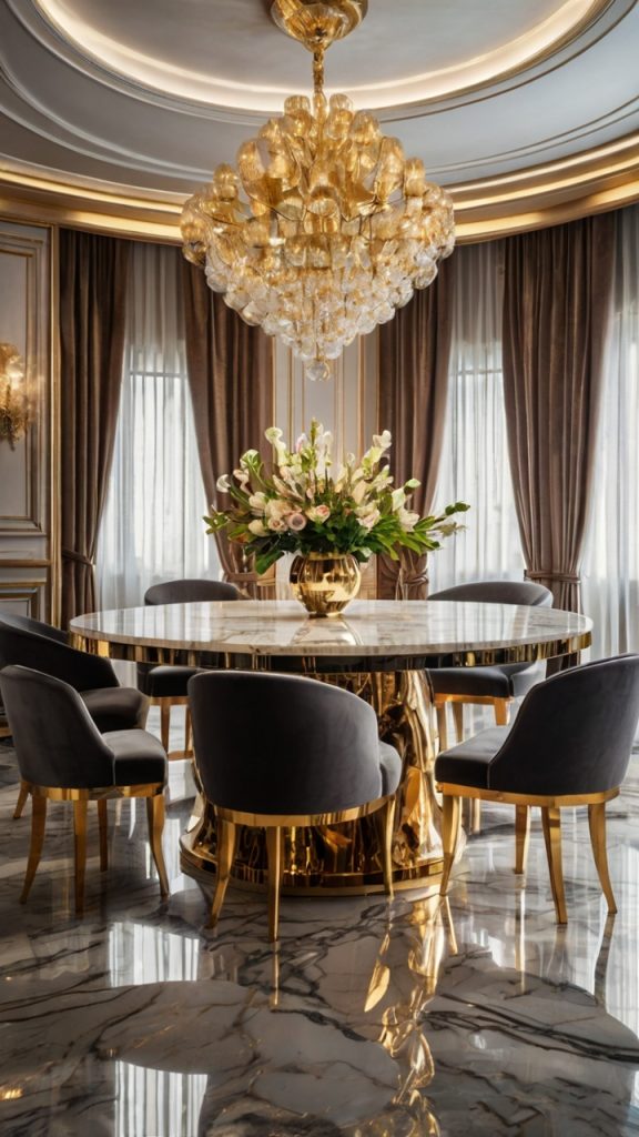 Finally, let’s talk maximum glamour. Because sometimes, you just want your dining room to feel like it belongs in a luxury hotel.