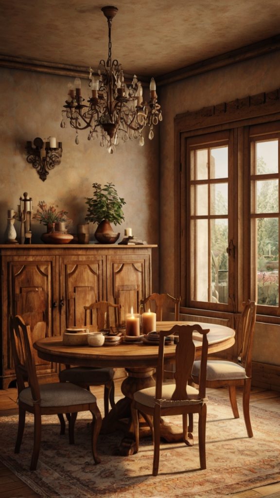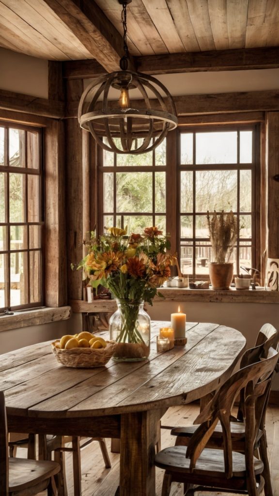 Picture this: a chunky, reclaimed wood round table that looks like it’s been in your family for generations. Surround it with mismatched chairs (yes, on purpose!), and you’ve got instant character. I once scored an old round table at an estate sale, sanded it down, and left the natural imperfections. Best $50 I ever spent.