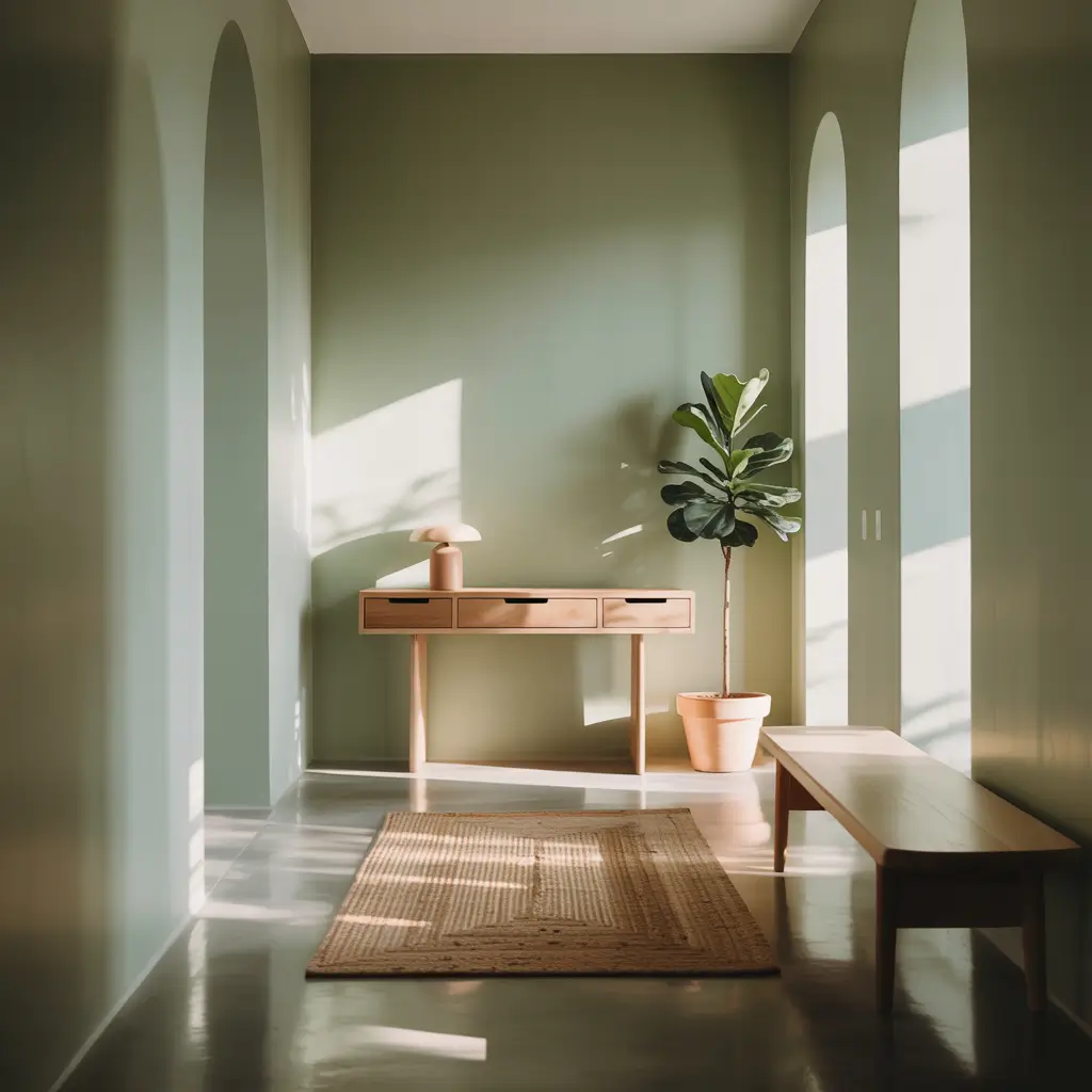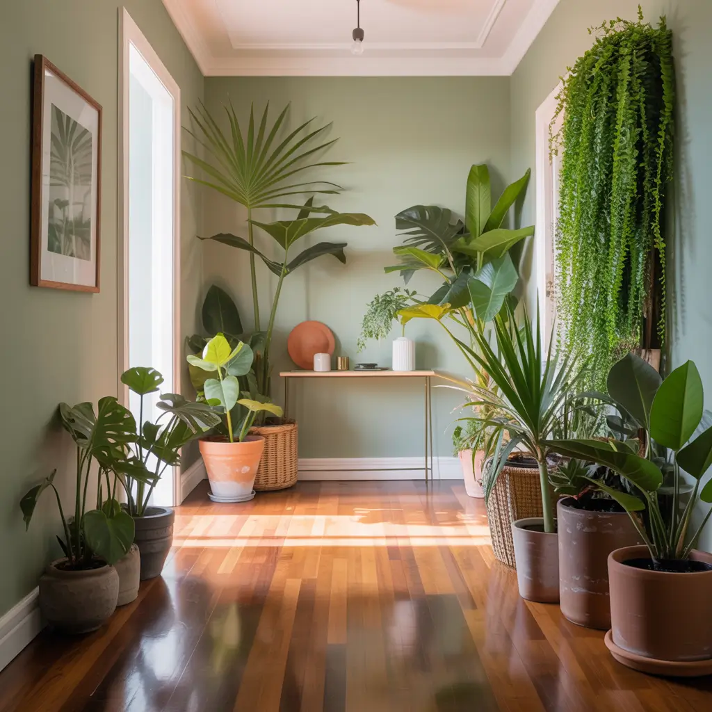 Sage Green Hallway with Indoor Plants