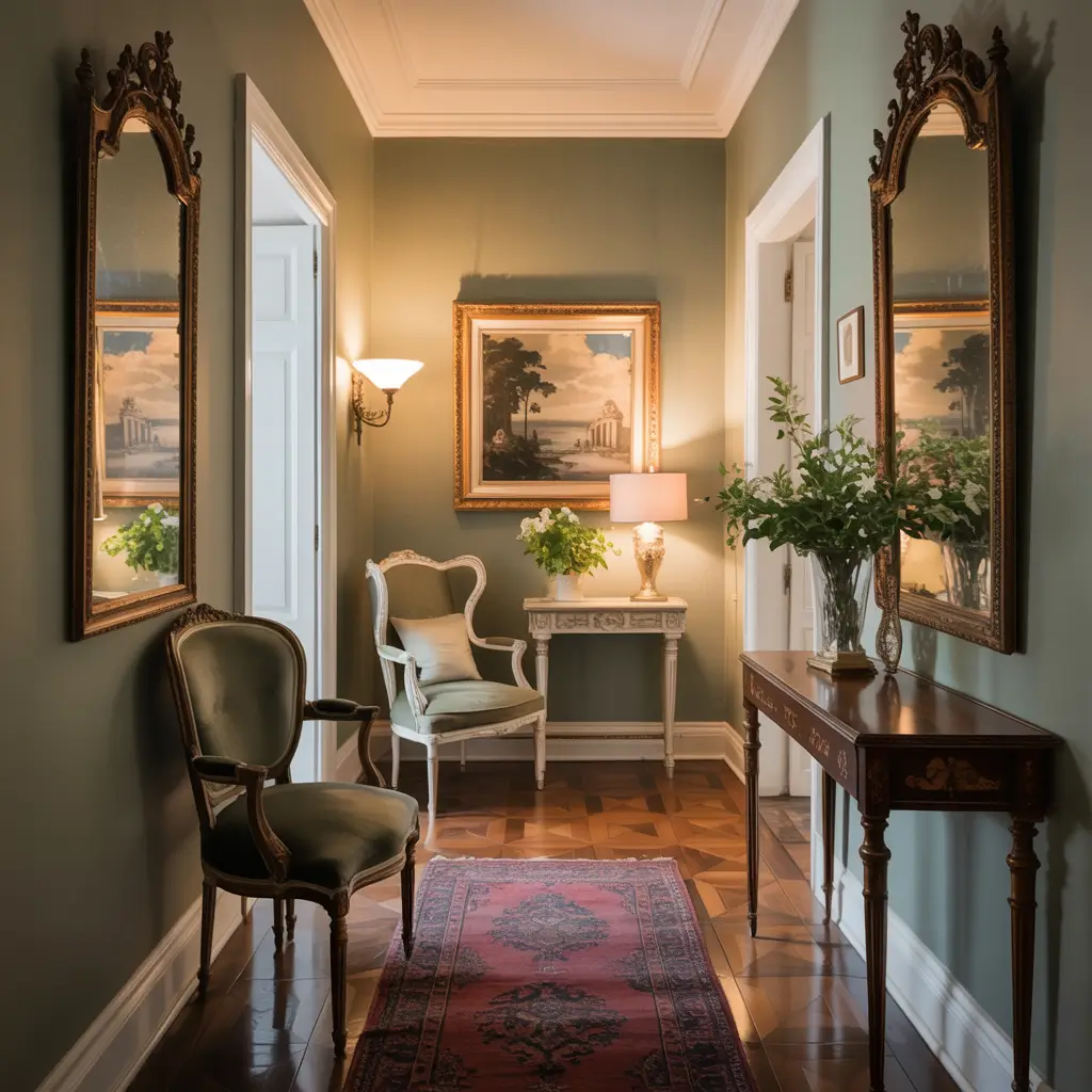 Sage Green Hallway with Vintage Decor