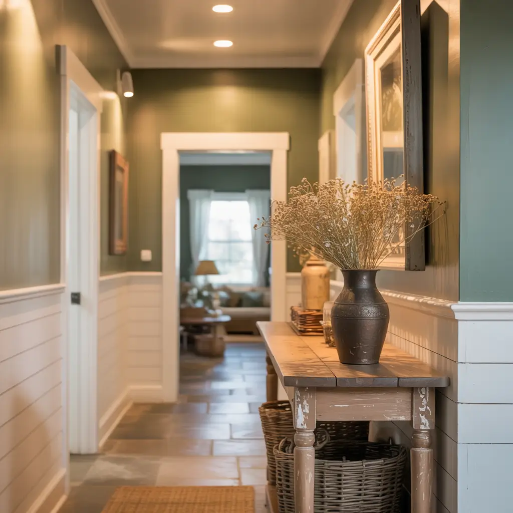 Farmhouse-Style Sage Green Hallway Ideas